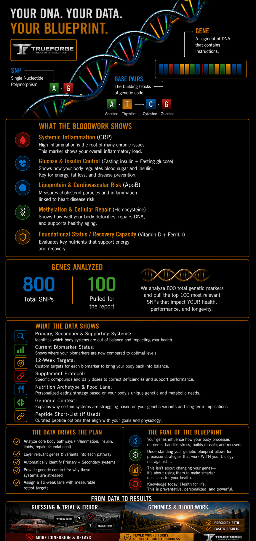 Genetics + biomarkers turned into a personalized roadmap.